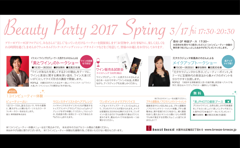 ブリーゼブリーゼ イベントプロデュース 2022年2月28日 Branding Works Client : 株式会社サンケイビル Design : Daisuke Mizuma ( PAVE ) 2017,OSAKA